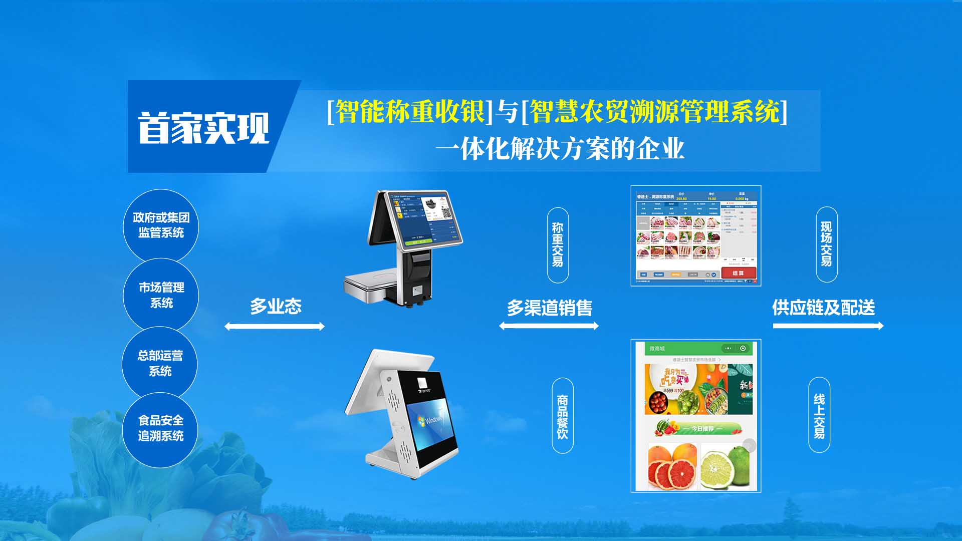 統(tǒng)一管理系統(tǒng)、規(guī)范溯源秤重、杜絕缺斤少兩、提升市場信譽度,革新市場營銷和集群推廣模式。